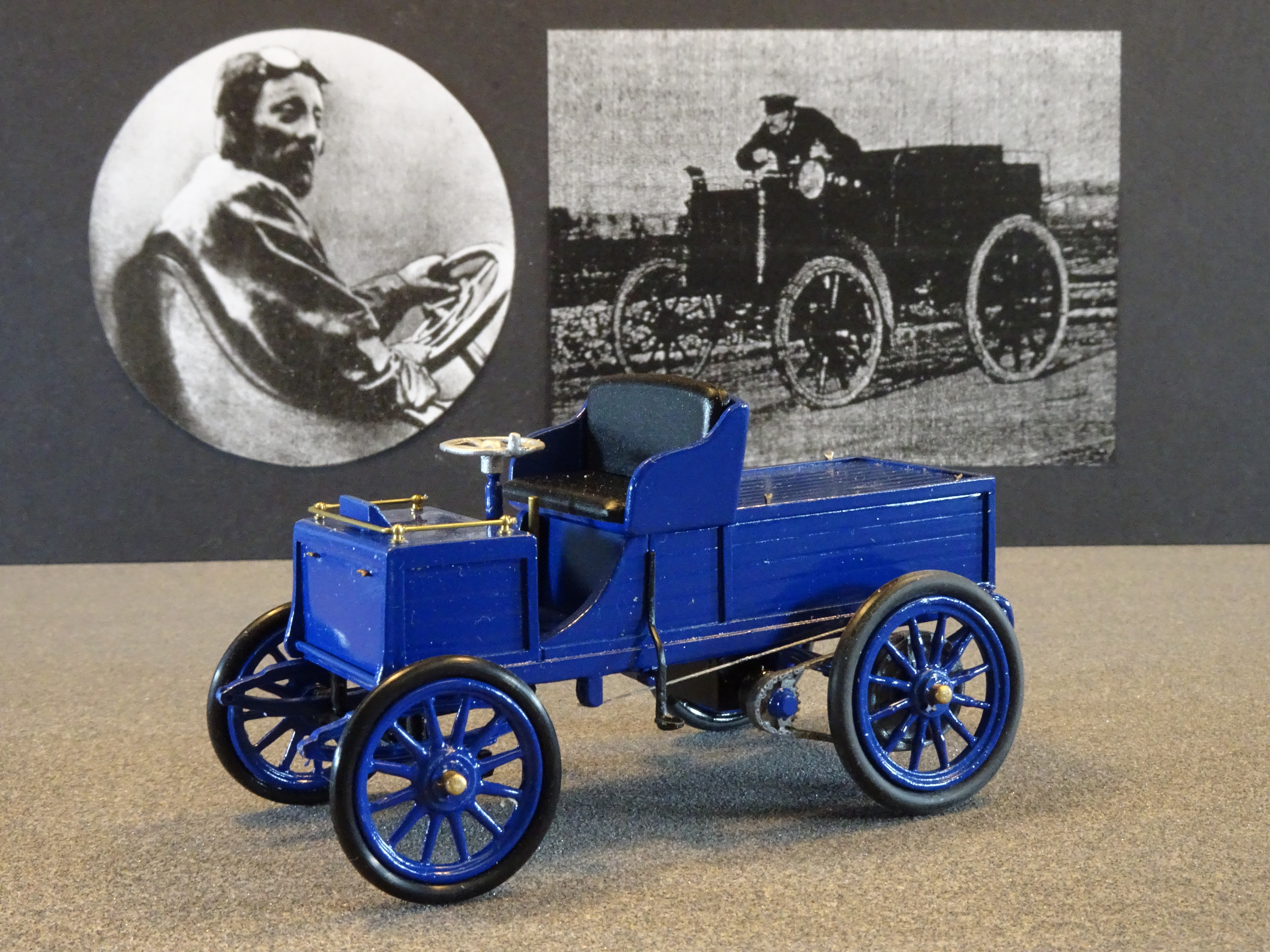 1898 Jeantaud Duc driven by Count Gaston de Chasseloup-Laubat to a speed of 39.24mph. Model by GB Models (Geoff Brown)/Touchwood Models (Stuart Delf)