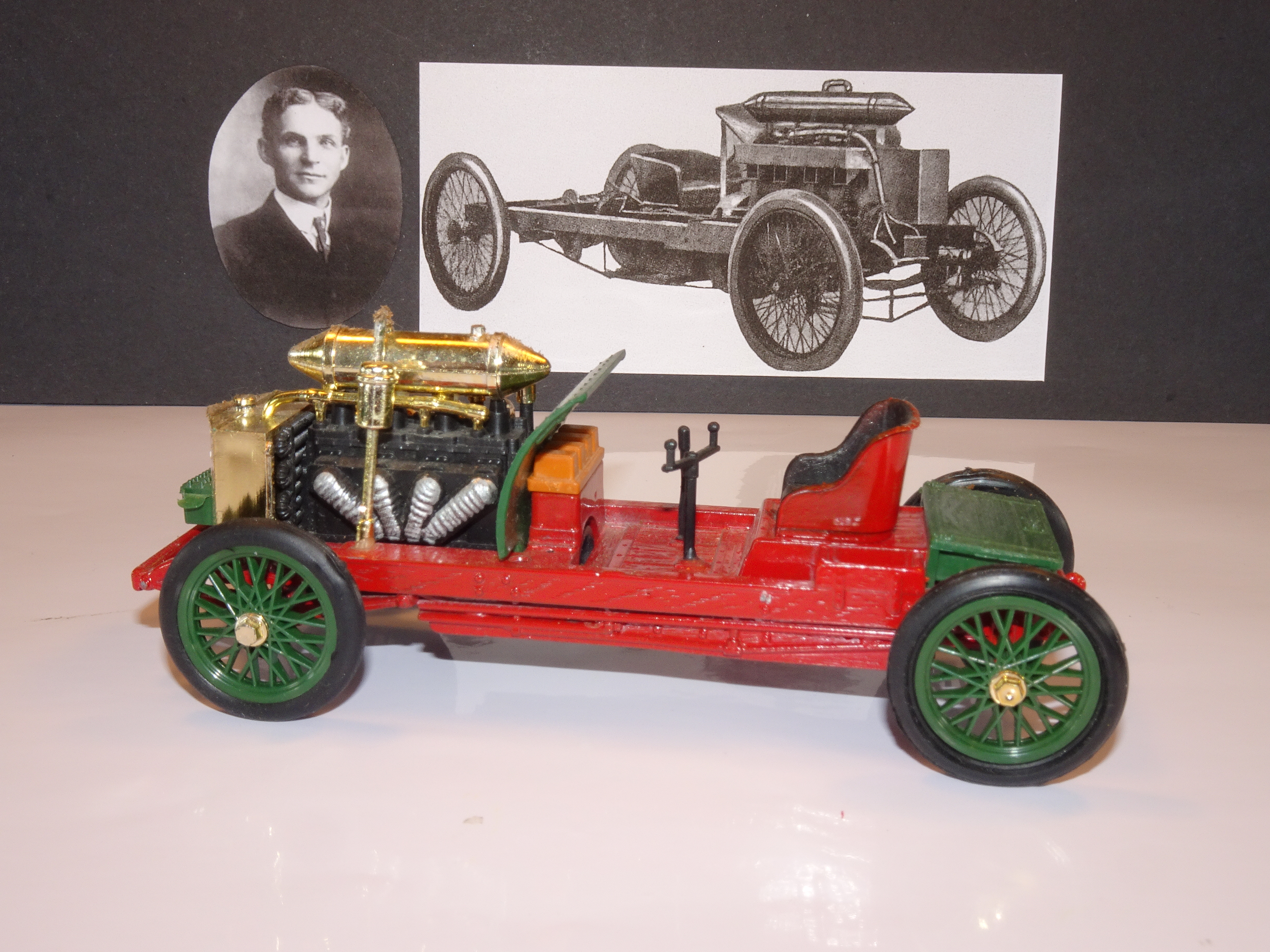 1910 Blitzen Benz driven by Barney Oldfield to a speed of 131.275mph. Model by Brumm